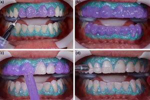 2nd appointment - 0.5-1 mm of front surface of tooth is prepared. After that temporary veneer is bonded to tooth.